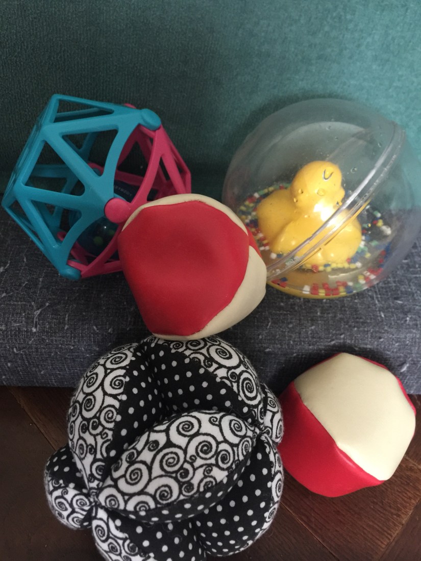 Je to jedna z nejvice oblibenych aktivit. Do kosiku dam ruzne hracky + nehracky. Napr. kousatko, malou knizku, sitko na caj, kojici korale, krejcovsky metr, piskatko a balonek. Anicka si rada vse z kosiku vysype a prozkoumava, co tam vsechno ma. Tedy Anicka si rada hraje i se samotnym kosikem, moc se smeje kdyz ji ho davam na hlavu. ☺️ Obsah kosiku obmenuji, at tam ma vzdy neco jineho. Samozrejme ze pri hre, napriklad s krejcovskym metrem, davame veliky pozor, aby se ditku nic nestalo.